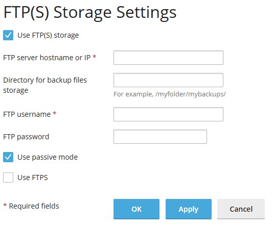 - You should come to the above page. Once there, make sure to keep the Use FTP(S) storage selected.